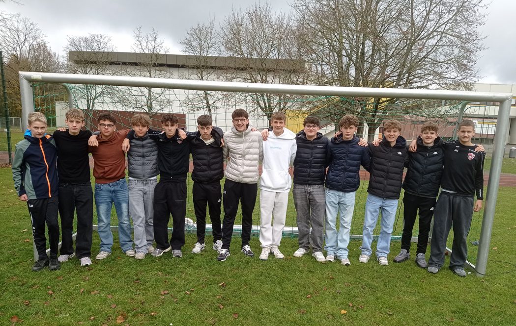 Das Entscheidungsspiel unseres ältesten Jahrgangs (U17) am 11. November, ebenfalls gegen das Regino-Gymnasium in Prüm, entwickelte leider keine Spannung wie die anderen Turniere. Obwohl der Gegner zu Beginn die erste Chance verzeichnete, die unser Torwart Florian Zahnen entschärfte, übernahmen die Jungs schnell die Spielkontrolle und führten zur Halbzeit bereits deutlich. Ein Doppelpack von Tim Brodel leitete den Kantersieg ein, ehe Julian Hanoosh (2x), Elias Gierden, Jona Kiemen und Niklas Haller die Pausenführung auf 7:0 schraubten. Nach der Halbzeit erhöhte Elias umgehend auf 8:0, ehe der Gegner in Folge eines Strafstoßes zum Ehrentreffer kam. Dieser Gegentreffer kam auch zustande, weil einige der Jungs bei diesem Spielstand eine gestiegene Motivation offenbarten, ihr eigenes „Torkonto“ aufzufüllen, wodurch die Positionstreue und mannschaftliche Disziplin etwas nachließen. Johannes Hoffmann und erneut Elias erzielten die weiteren Treffer zum 10:1 Endstand. Somit komplettiert unser U17-Team die Riege der Kreismeister in diesem Schuljahr und darf sich auf die nächste Runde im kommenden Frühjahr freuen!