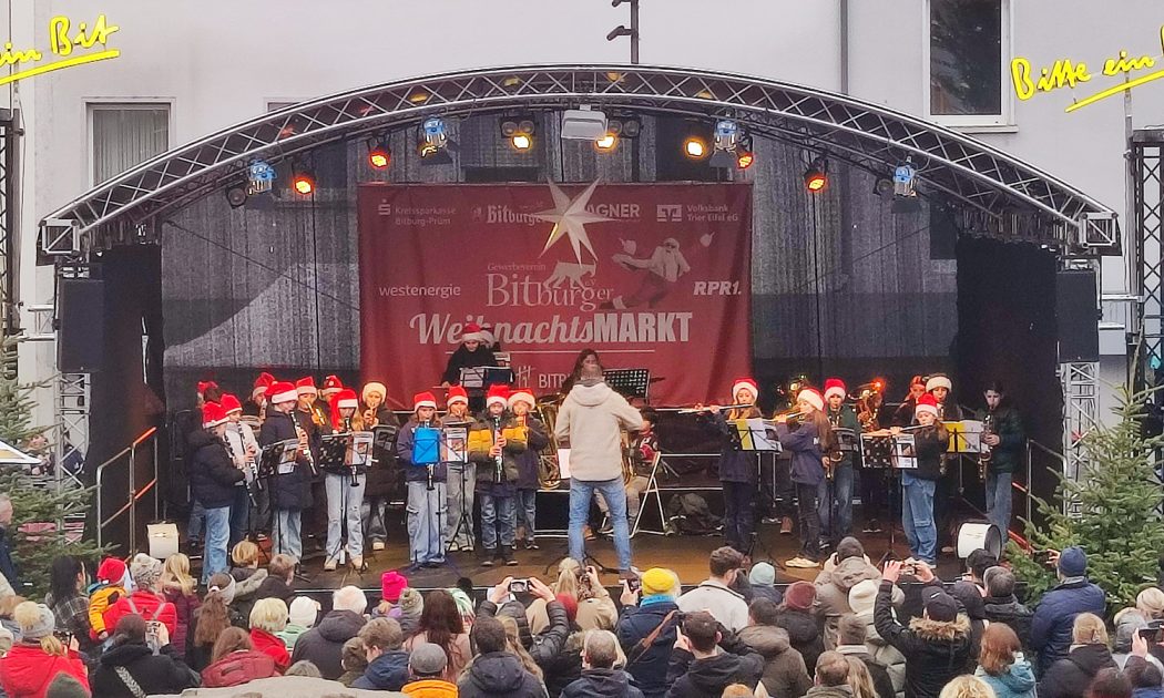 Der Advent schreitet voran und so richtig nach Advent fühlt es sich ja nur dann an, wenn auch festliche Blasmusik ertönt. So bereiteten wir, die Bläserklassen 5b und 6a+b, gemeinsam voller Vorfreude unseren traditionellen Auftritt auf dem Bitburger Weihnachtsmarkt vor.