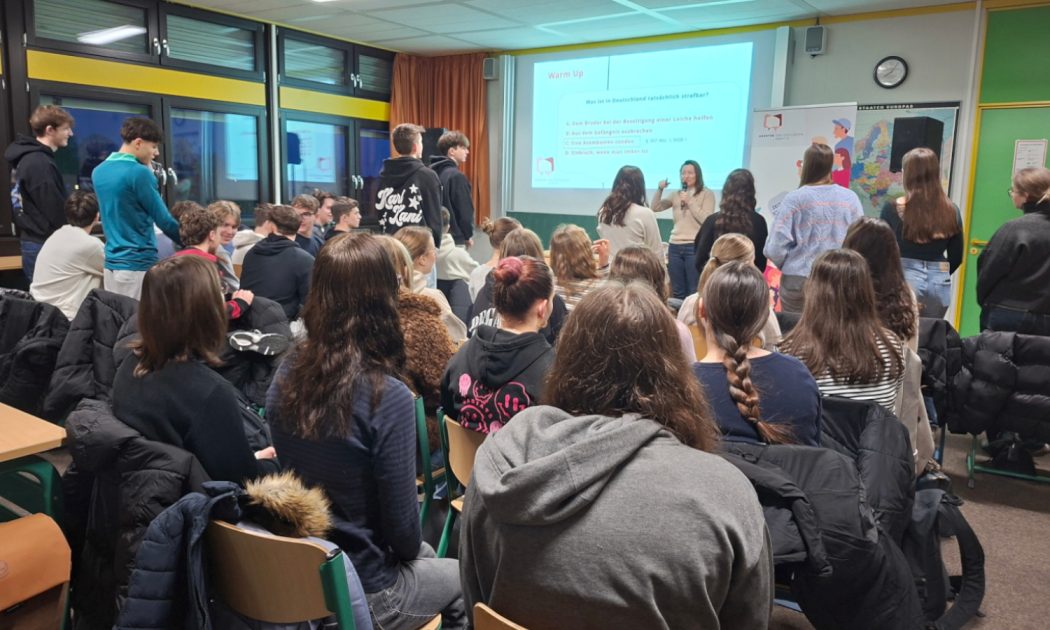 Am Mittwoch, 14.01.2026, und am Donnerstag, 15.01.26, besuchte die Jahrgangsstufe 11 die Agenten des Rechtsstaats, bestehend aus Serap Emir, Übersetzerin und Bildungsreferentin, und Ada Kremer, Praktikantin bei den Agenten der gepflegten Debatte, aus Offenbach, um mit ihnen über Meinungsfreiheit, Recht in Deutschland, zur heutigen Zeit und zur Zeit der DDR zu diskutieren.