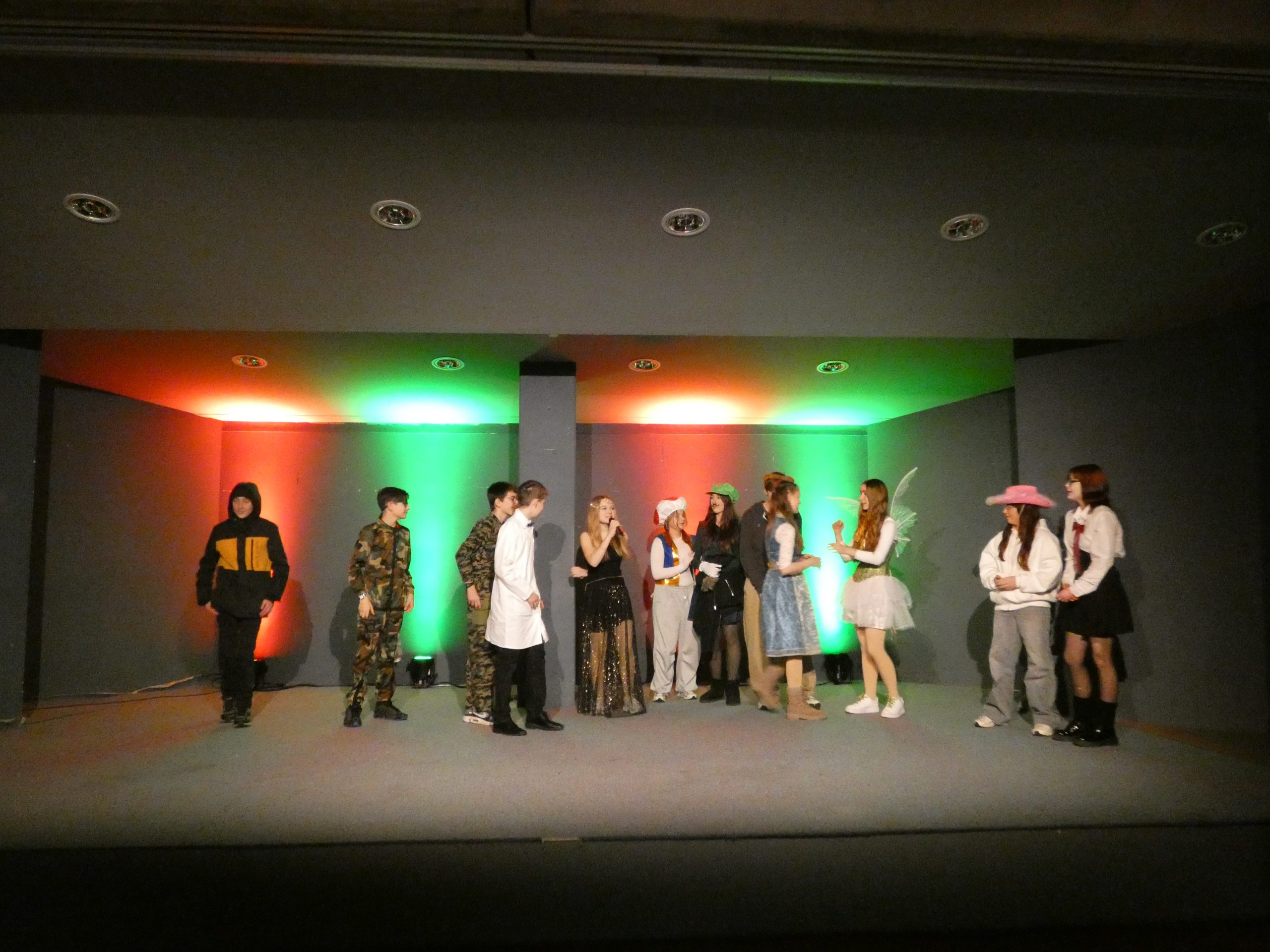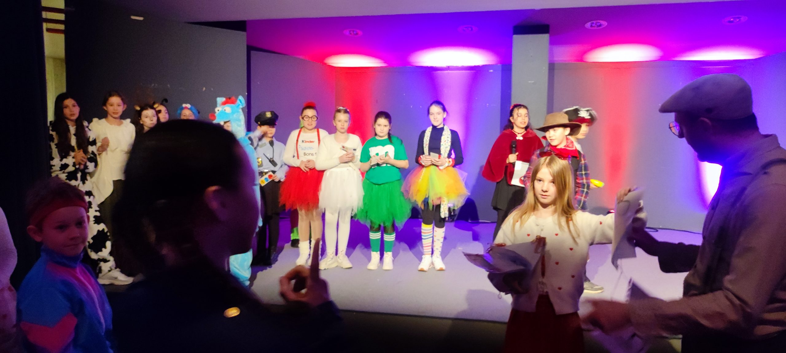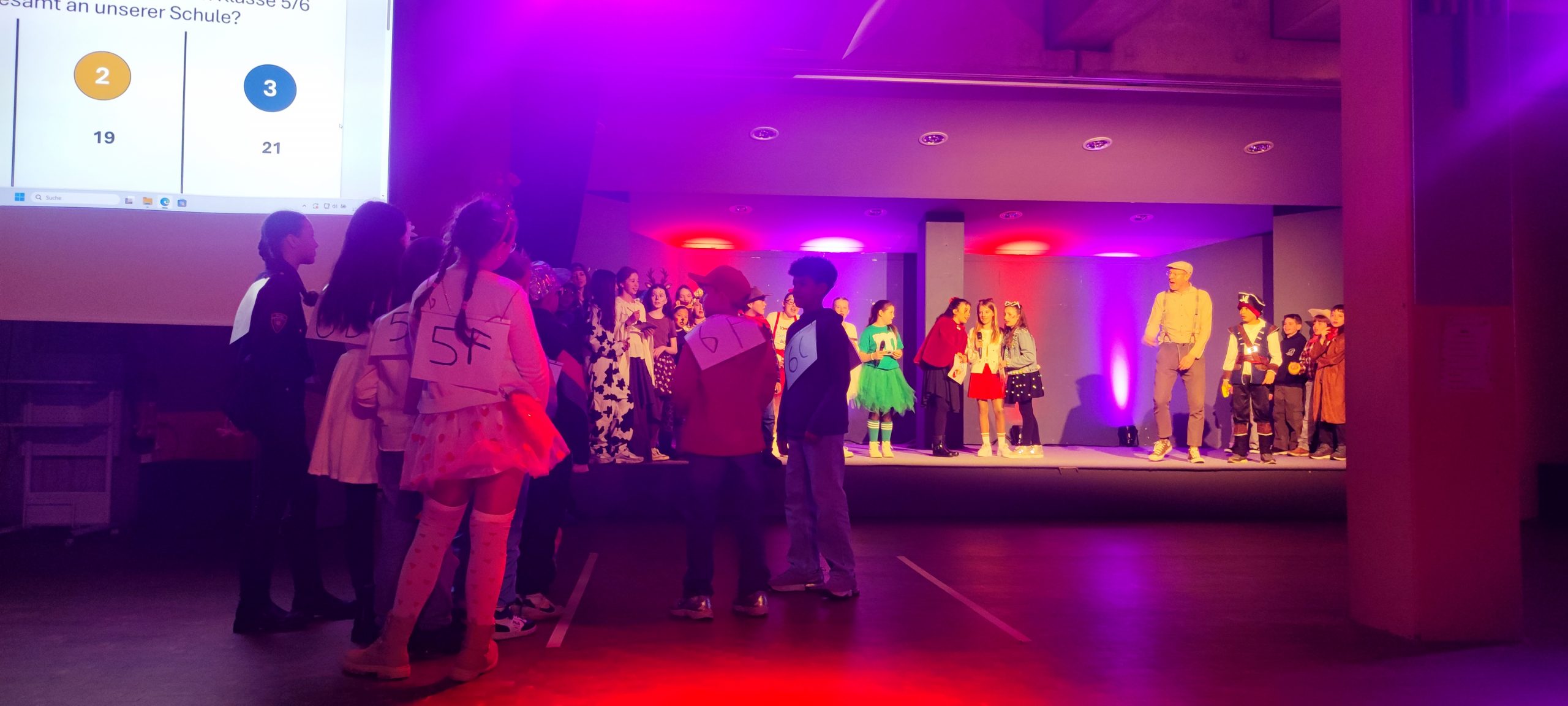 Die Unterstufe überzeugte mit sportlichen Hebefiguren, einer toll gestalteten 1, 2 oder 3 Show, dem Funkenmariechen Lina, weiteren mitreißenden Tänzen und einem humorvollen Sketch. Auch spontane Momente und lustige Fragerunden rund um Fastnacht sorgten für viele Lacher. Besonders das Publikum wurde immer wieder aktiv eingebunden – beste Unterhaltung garantiert!