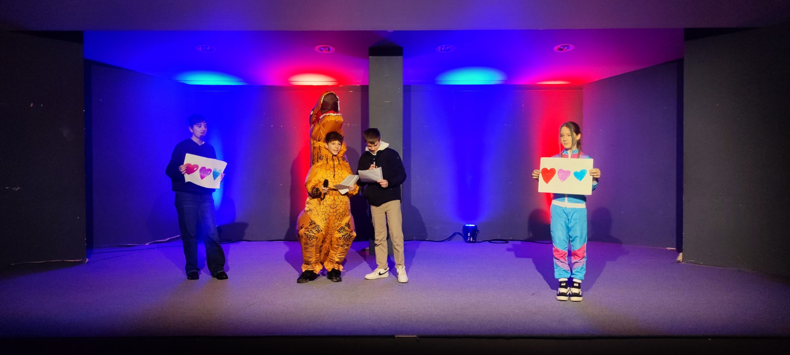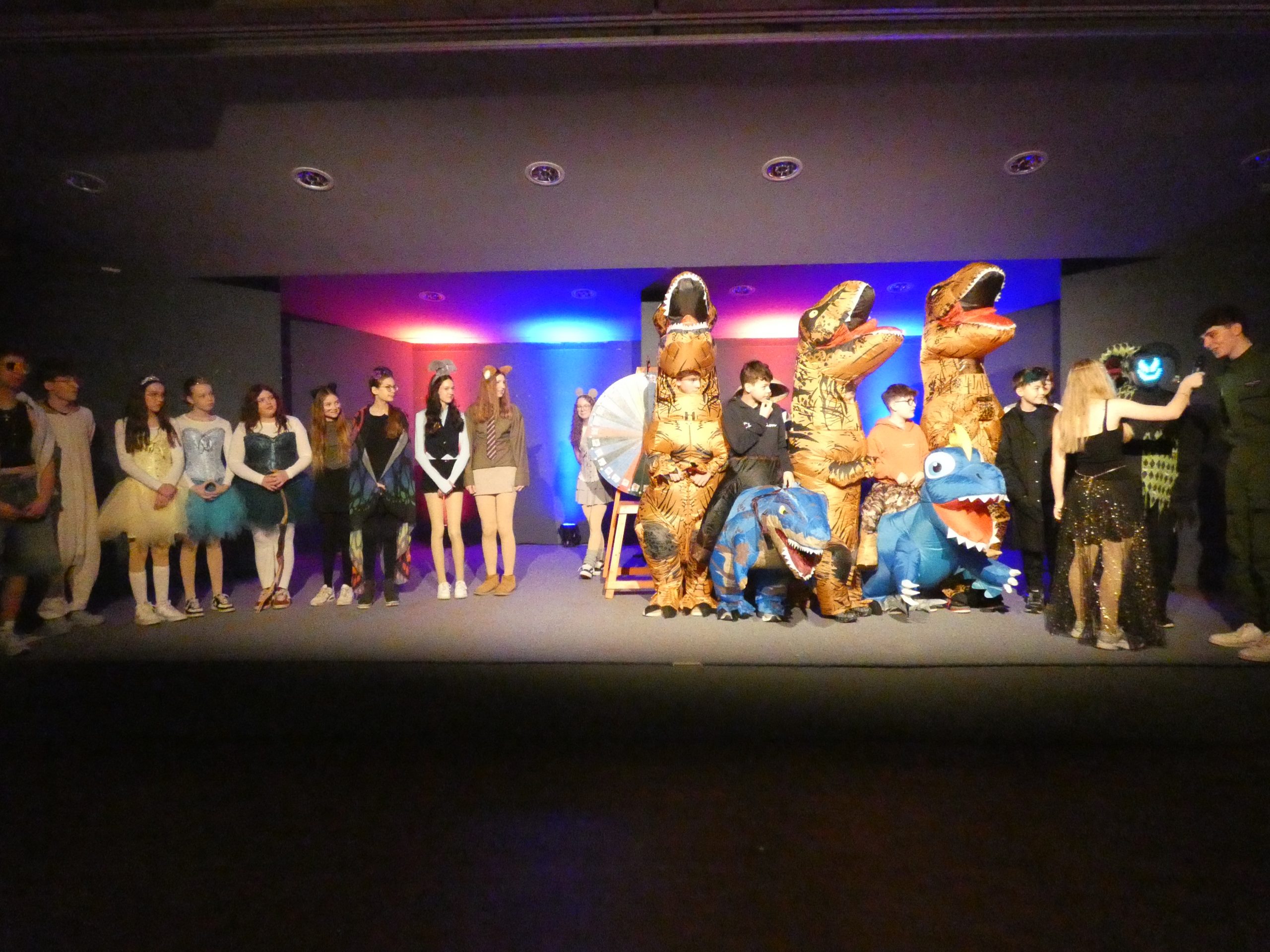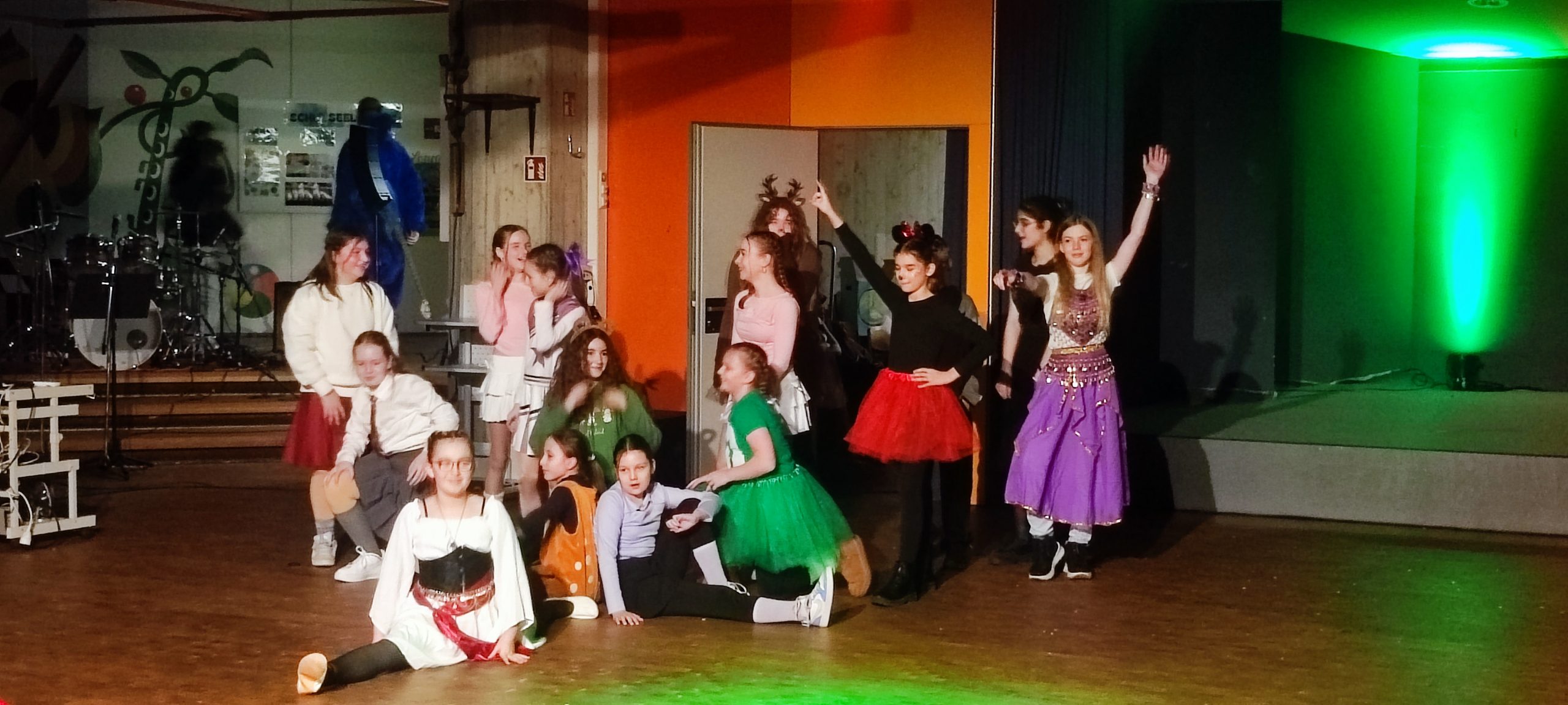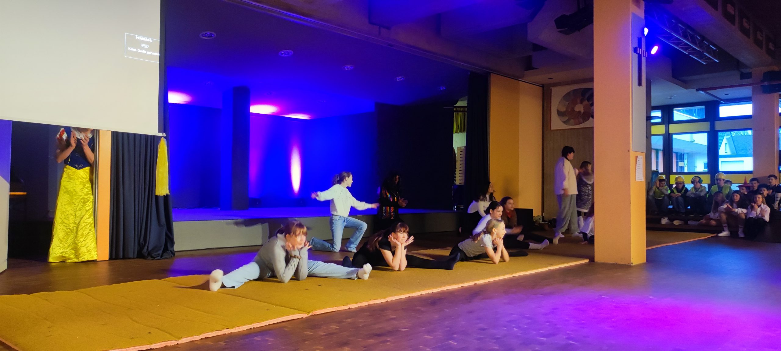 Die Unterstufe überzeugte mit sportlichen Hebefiguren, einer toll gestalteten 1, 2 oder 3 Show, dem Funkenmariechen Lina, weiteren mitreißenden Tänzen und einem humorvollen Sketch. Auch spontane Momente und lustige Fragerunden rund um Fastnacht sorgten für viele Lacher. Besonders das Publikum wurde immer wieder aktiv eingebunden – beste Unterhaltung garantiert!