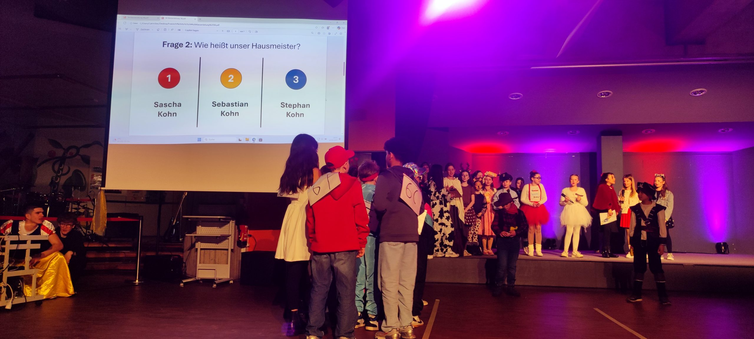 Ein herzliches Dankeschön gilt allen Mitwirkenden, der SV für die Organisation, unserer Technik-AG, unserem Hausmeister Sascha sowie den betreuenden Lehrkräften, die mit viel Engagement, Kreativität und Herzblut diese Kappensitzung möglich gemacht haben.