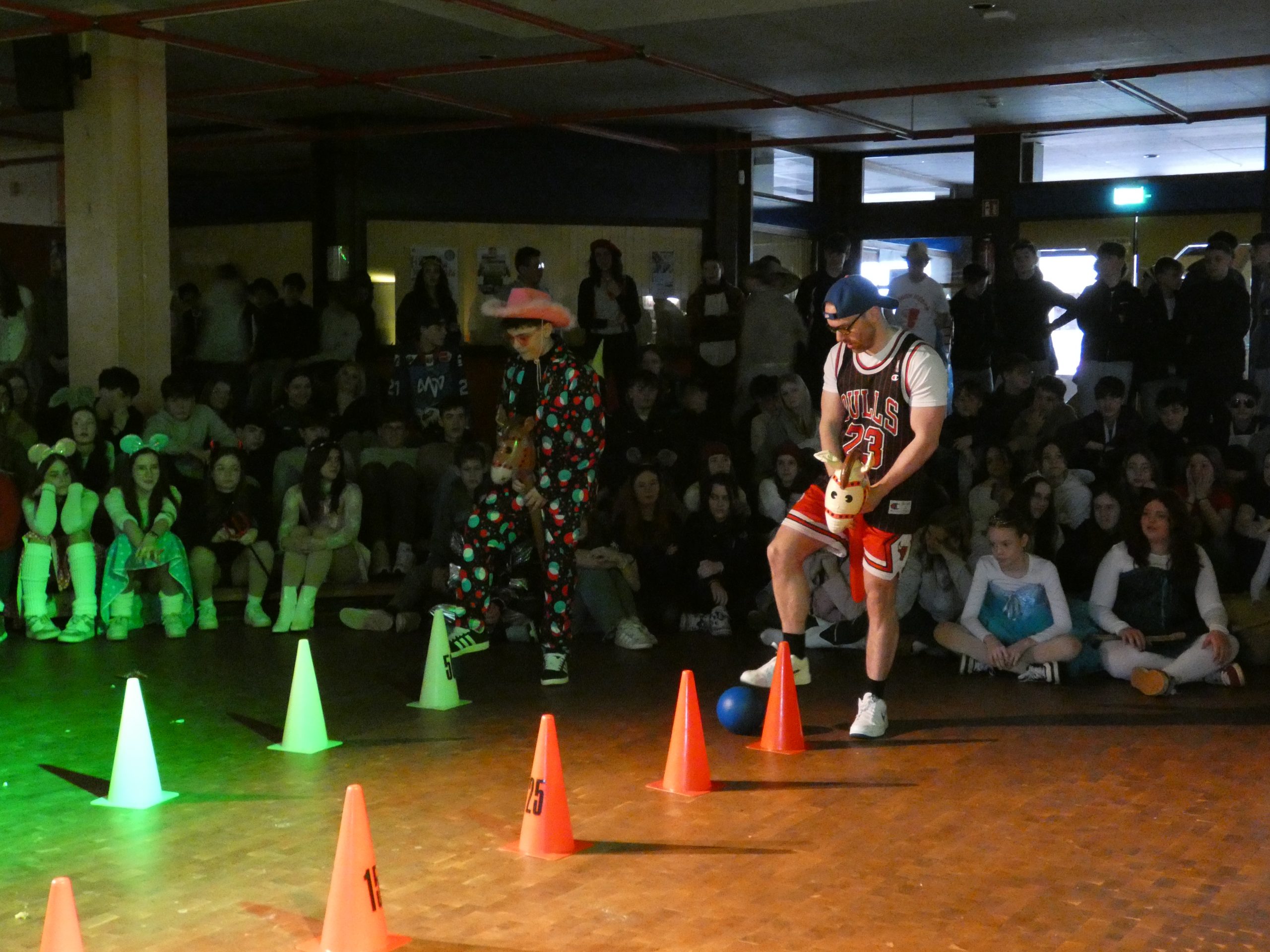 In der Mittelstufe ging es ebenso schwungvoll weiter: Showtanz, ein fantasievoller und durch Eileen professionell und eloquent moderierter Kostümwettbewerb sowie weitere kreative Beiträge wie eine „Lehrersprüche“-Raterunde, Hobby-Horsing und eine unterhaltsame Reise nach Jerusalem brachten die Halle zum Beben. Hier wurde deutlich, wie viel Teamgeist, Mut und Ideenreichtum in unseren Klassen stecken.